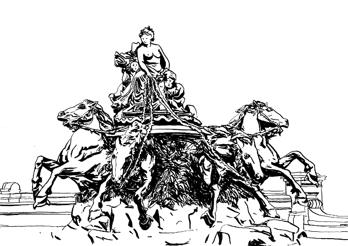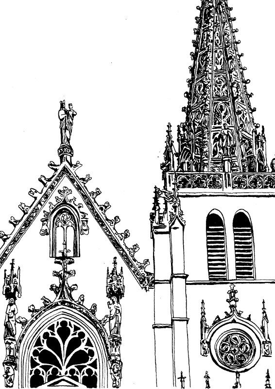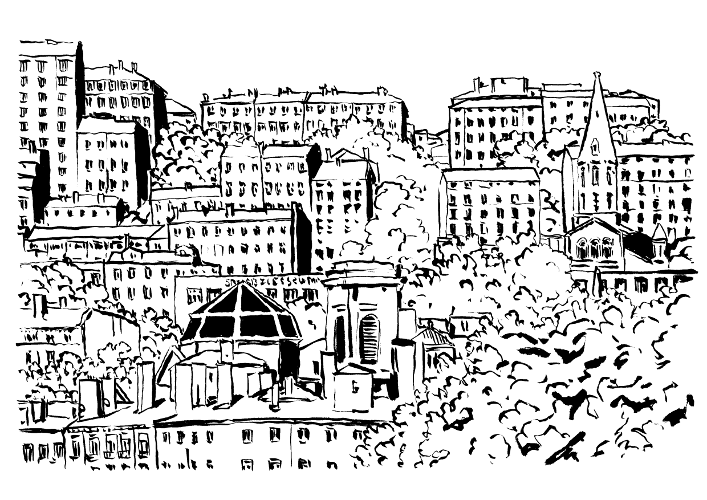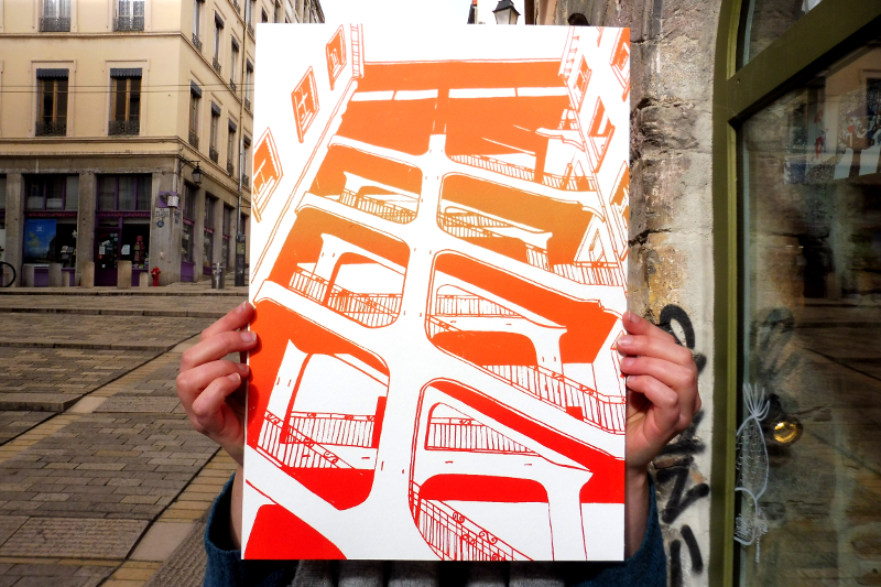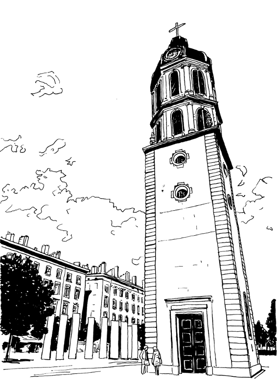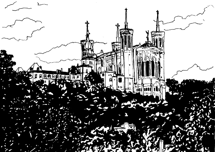 Donc une dessinatrice, architecte de formation en plus, ne pouvait que dessiner sa ville ! Mais dessiner quoi, comment et pourquoi ? Je ne voulais pas représenter le Lyon touristique. Je voulais dessiner ma ville. Mon quotidien. Des fois le deux se croisent et c’est logique ! En vivant à Lyon, je vois Fourvière tous les jours ! Alors j’ai voulu avoir un regard un peu décalé, sur les monuments et d’autres bâtiments moins ou pas connus.