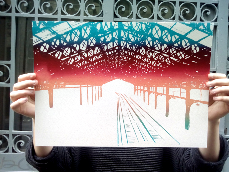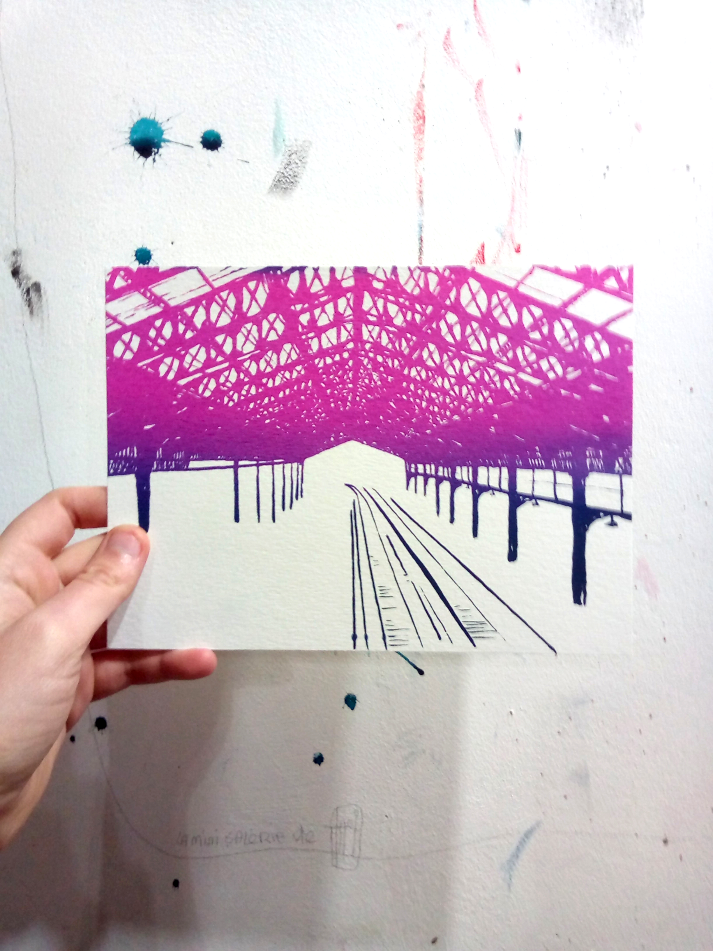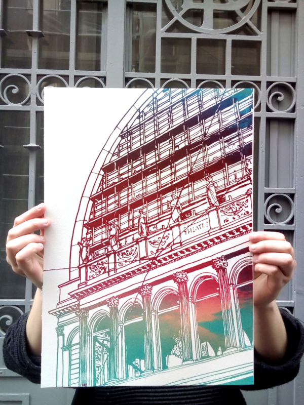 Du coup c’est toujours une vrai révélation pour moi quand je tire les sérigraphies en dégradés en grands formats ! je découvre mon dessin en couleur et ça fait toujours un petit quelque chose !